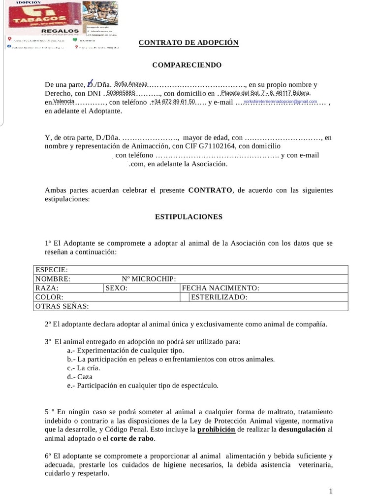 Una vez efectuado el pago por BIZUM, debes enviar este Solicutud en PDF debidamente cumplimentado, junto con una fotografía del perro que ha elegido adoptar. Todos los perros tienen la misma tarifa de adopción. Los documentos restantes, cambio de titularidad, seguro y entrega a domicilio.